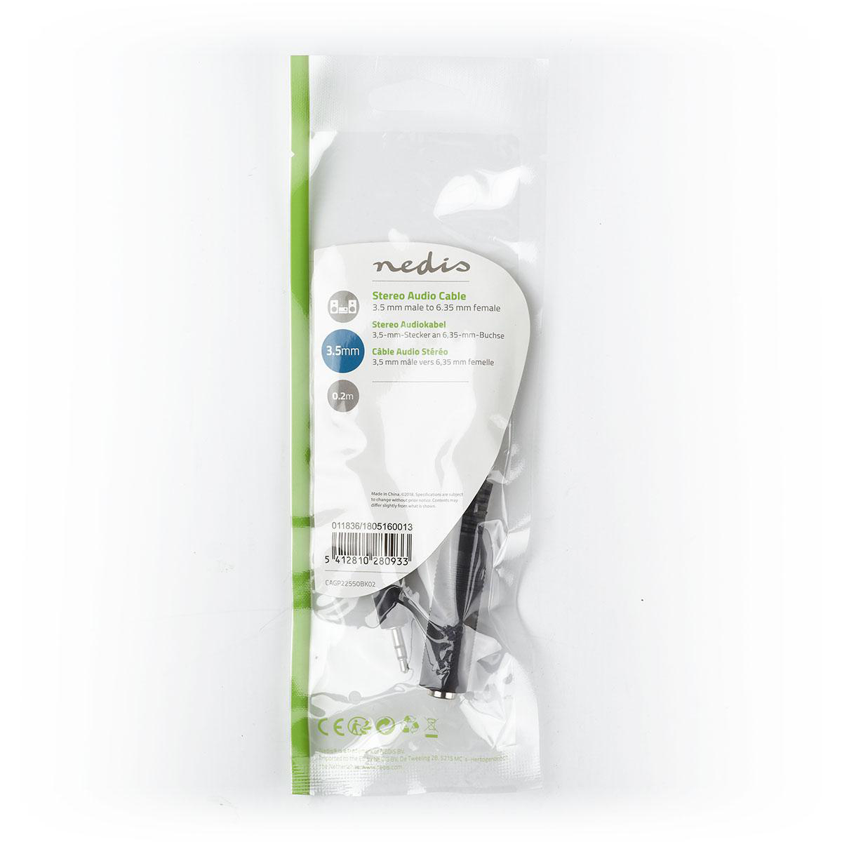 Cavo Audio Stereo Maschio da 3,5mm-Femmina da 6,35mm 0.2m Nero