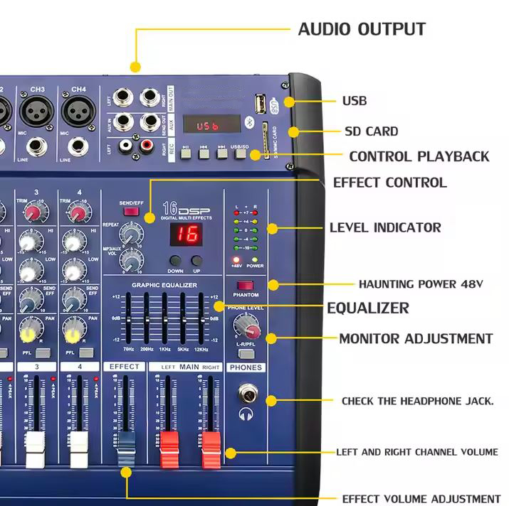 Mixer professionale 4 canali con Bluetooth e USB 350w