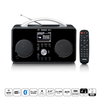 The Lenco PIR-645BK is a fully portable SMART radio, allowing you to listen to radio stations from all over the world.