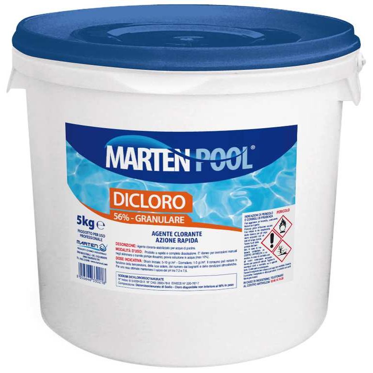 Agente clorante stabilizzato per acque di piscina, disinfettante e antibatterico, a rapida dissoluzione, non decolora le superfici, non modifica il pH dellacqua. Indicato per la superclorazione iniziale o trattamenti d'urto periodici in caso di temporali o alghe. Idoneo per immissioni manuali negli skimmers o tramite pompe dosatrici, previa soluzione in acqua.
