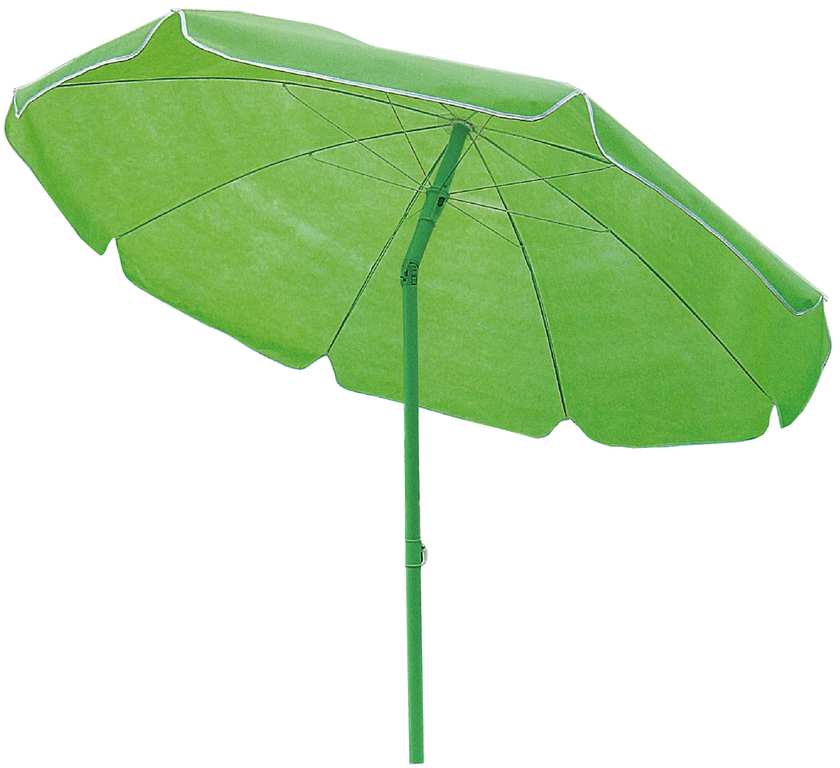 Con 8 stecche in acciaio e snodo, palo in acciaio colorato, telo in TNT, sacca per il trasporto, col. assortiti (blu, giallo, verde).