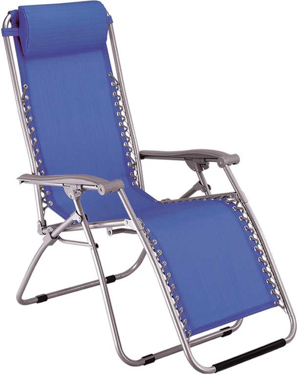 Struttura richiudibile con tubolare in acciaio verniciato Ø mm. 25, reclinabile a 180°, tessuto in textilene, poggiatesta.