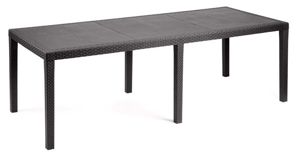 In polipropilene effetto rattan con film antigraffio, resistente e duraturo, impilabile ed estensibile, con top liscio.