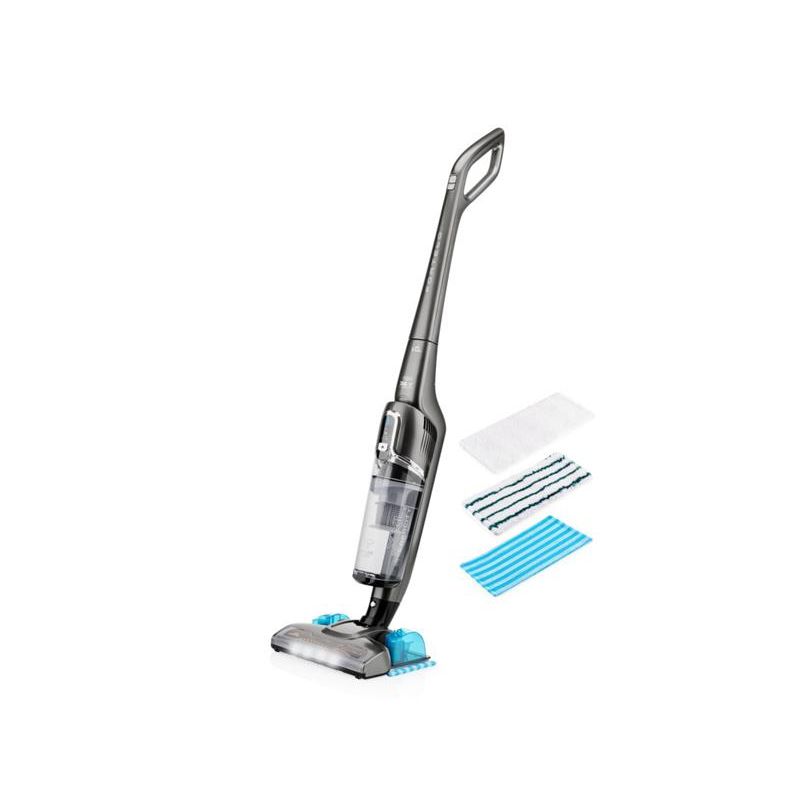 The ETA Fortelo 2 in 1 multifunctional vacuum cleaner combines cleaning efficiency with an elegant design. It vacuums and wipes in one stroke, which saves you time and effort. Thanks to the CLICK & CLEAN technology, you can easily attach or remove the mop attachment, whose capacity of 150 ml is enough for up to 40 m2 of floor.