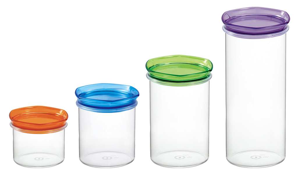 In termoplastica certificata per alimenti, con guarnizione salva freschezza, col. assortiti.