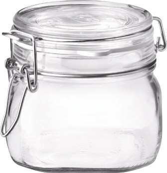 In vetro spesso e resistente, chiusura ermetica, guarnizione in gomma, inattaccabile da sale e sostanze acide, lavabile in lavastoviglie.