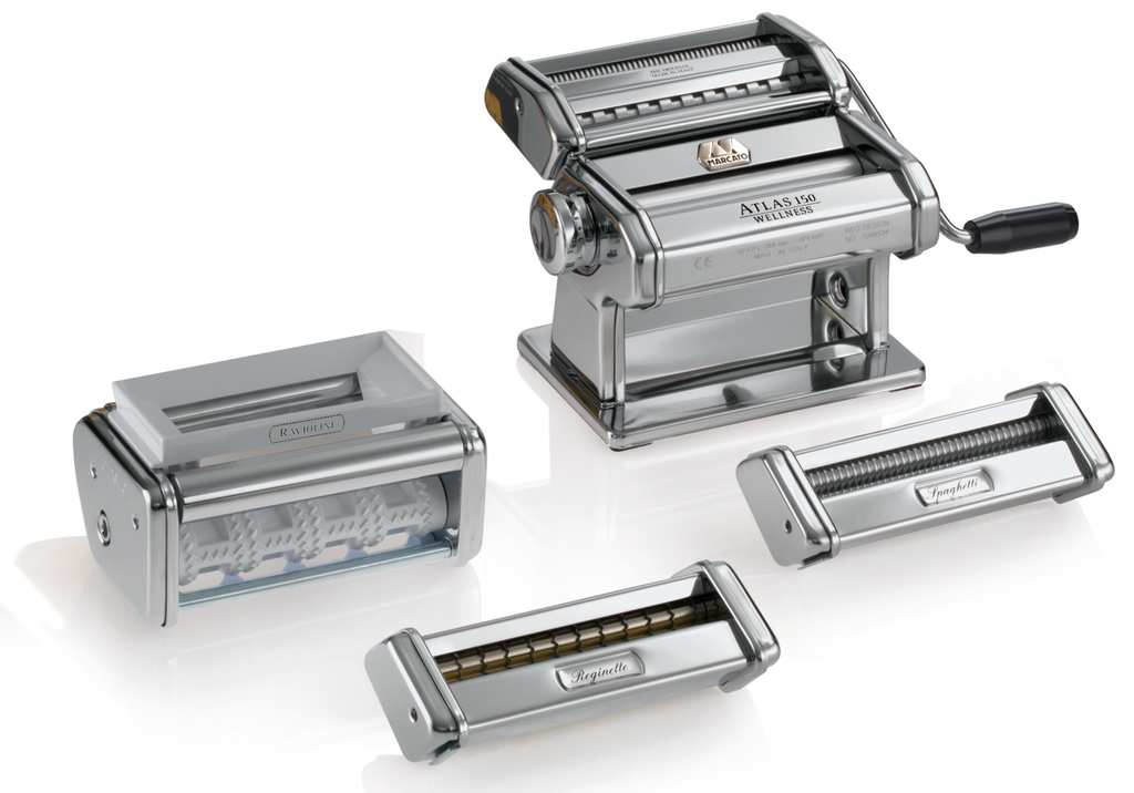 Solida struttura in acciaio cromato, rulli in alluminio mm. 150, permette di realizzare 6 formati di pasta: lasagne, fettuccine mm. 6, tagliolini mm. 1,5, ravioli, reginette e spaghetti, regolatore di spessore a 10 posizioni (mm. 0,6÷4,8), con morsetto per il fissaggio al piano di lavoro, certificata da 5 brevetti internazionali, in dotazione accessori Raviolini, Reginette, Spaghetti, compatibile con tutti gli altri accessori extra (non in dotazione), garanzia 10 anni. Dimensioni:Macchina cm. 20x20x15,5 hAccessorio Raviolini cm.17,5x11x8 hAccessorio Spaghetti cm.17,5x7x3,5 hAccessorio Reginette cm.17,5x7x3,5 h