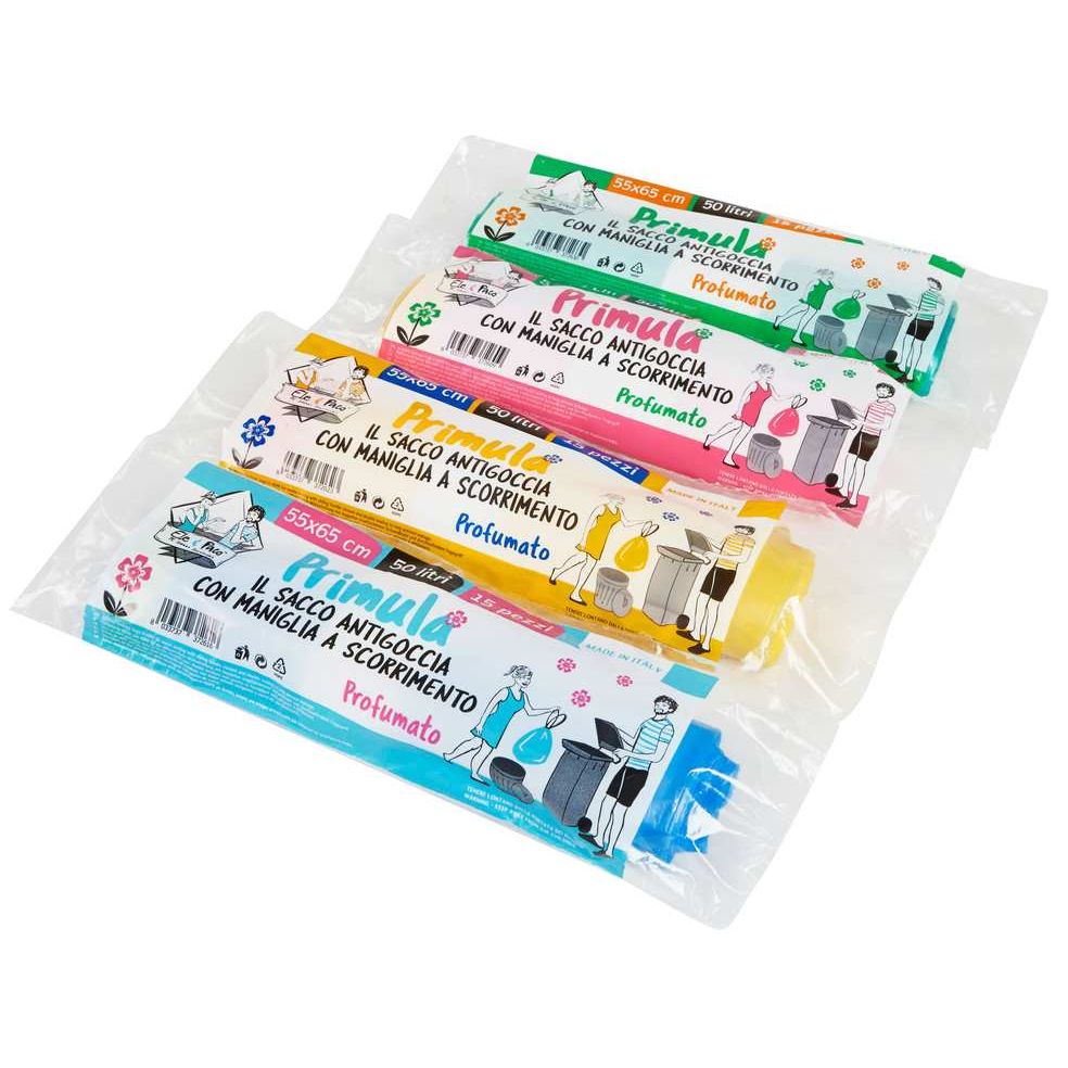 In polietilene alta densità, ideale per la raccolta differenziata. Sistema antigoccia, maniglia a scorrimento, gradevole profumazione, rotolo da 15 sacchetti.
