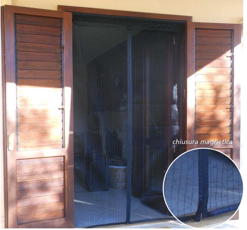In poliestere, con merletto, calamite e velcro biadesivo. Ideale per porte e balconi.