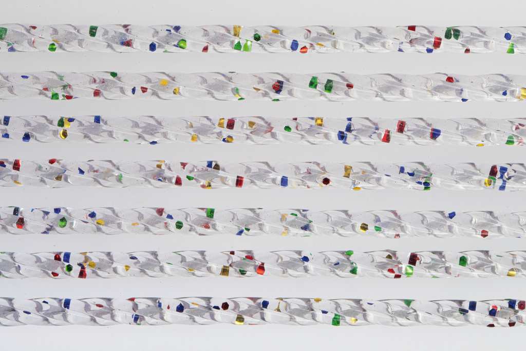 Profilato in pvc cristallo formato da 4 cilindretti trasparenti, anima centrale in poliestere colorato, si adatta agli ambienti che richiedono una particolare luminosità.