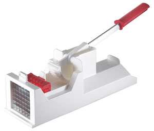 In polistirene antiurto atossico per alimenti. Lame in acciaio inox durissimo. Utilizzo con il minimo sforzo grazie al rapporto di leva da 1 a 5, trancia patate lunghe fino a 9 cm.