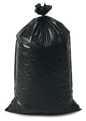 Sacco ad uso condominiale in polietilene ad alta densità con legaccio. Con cucitura laterale, antigoccia, col. nero, tipo leggero, rotolo da 10 sacchetti.
