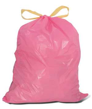 Sacco in polietilene a bassa densità con maniglie. Con cucitura laterale, antigoccia, col. rosa, rotolo da 12 sacchetti.