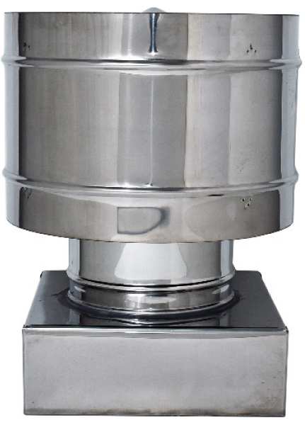 In acciaio inox AISI 304. Ideale per scarichi di stufe a pellet. Impedisce al vento di causare il ritorno dei fumi e ne migliora levacuazione, protegge la canna fumaria dalle intemperie e da nidificazioni di uccelli, indicato per zone ventilate.