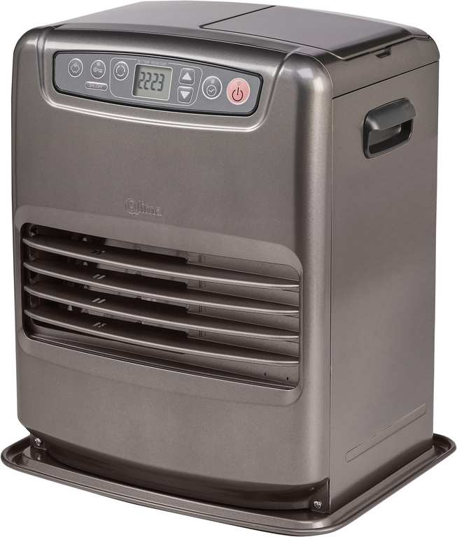 Struttura robusta e compatta, funzionale e facile da utilizzare. Estremamente silenziosa, elevata resa calorica, sistema anti-ribaltamento, protezione contro il surriscaldamento, sistema anti-odori, timer 24 ore, termostato regolabile, controllo automatico del flusso daria, display LCD, tettuccio freddo 'safe touch', tasto di sicurezza bambini, modalità risparmio in caso di serbatoio quasi vuoto, cm. 37x30x43 h. Classe efficienza energetica A.