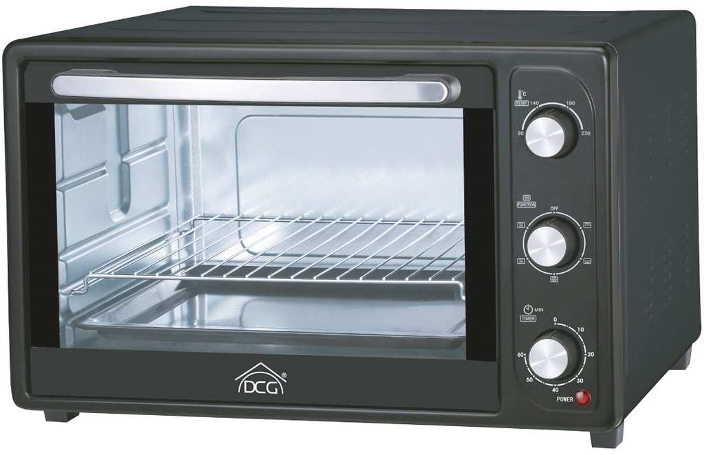 Capacità lt. 45, ventilato, porta con doppio vetro temperato, 6 posizioni di calore, timer con segnale sonoro 0-60, termostato regolabile 90÷230°C. Accessori: griglia e teglia, cm. 61x44x39 h.