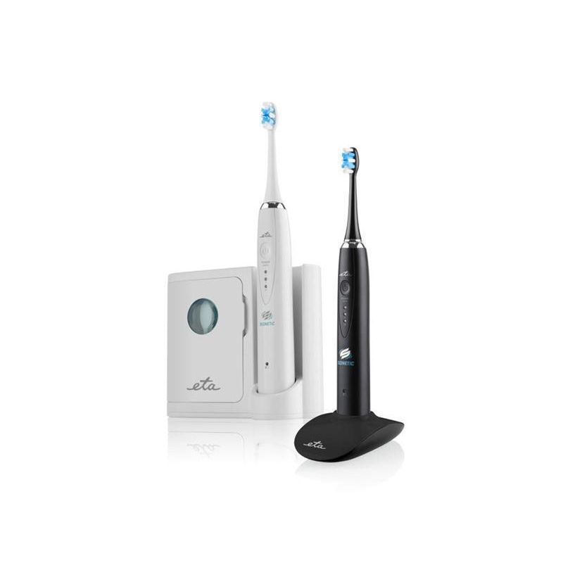 The set of two toothbrushes ETA Sonetic 3707 90010 is the perfect helper for daily mouth hygiene, which will entertain the whole family. The innovative MOVE + sonic technology allows you to effectively and gently care for and clean your teeth at a speed of 31,000 oscillating movements per minute. Using the unique microBUBBLES technology, you will also remove plaque and clean the interdental spaces. Sonic brushes can also be used on dental implants, fixed braces, bridges and crowns. They are also appreciated by people with sensitive teeth and gums prone to bleeding, which will help keep them healthy. The power source for the brush set is 3.7V Li-Ion accumulator batteries boasting extremely long life. Charging takes place using contactless induction technology. You always have an overview of operation and charging thanks to the light signaling. It adapts to your needs thanks to 3 different cleaning modes. The individual parts of the mouth will be helped evenly by the built-in 2-minute timer, which alerts you to the transition to the next part every 30 seconds. The package includes 4 spare heads, which keep the UV sanitizer clean, which uses UV technology to destroy up to 99.9% of bacteria.