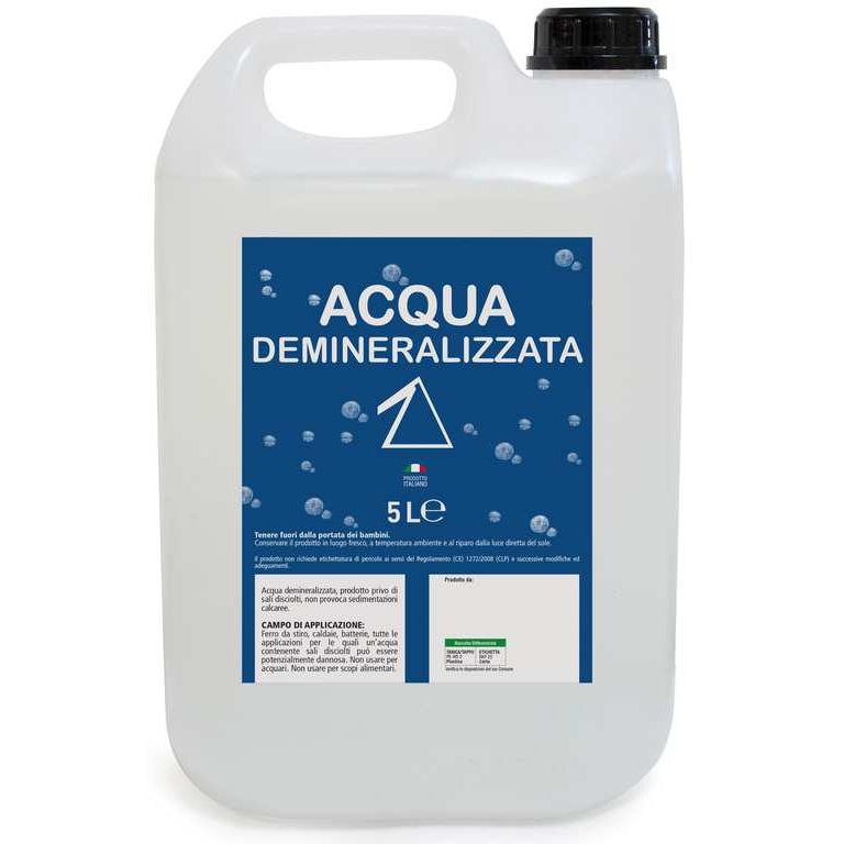 Prodotto privo di componente salina, non provoca sedimentazioni calcaree, ideale per caldaie di ferri da stiro, batterie e tutte le applicazioni per le quali unacqua contenente sali disciolti può essere dannosa.