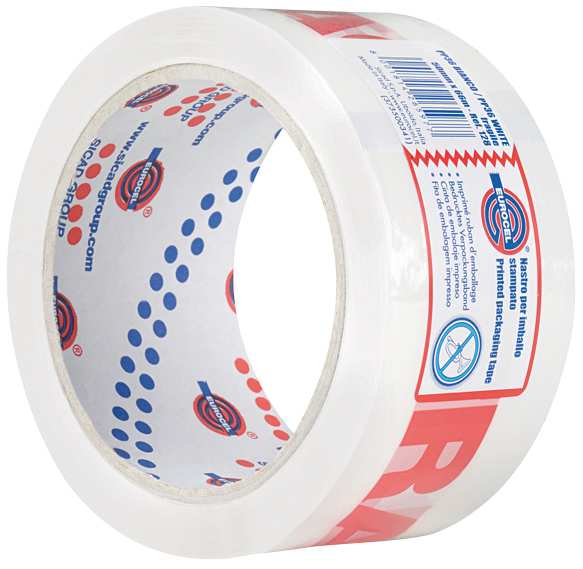 Alta adesività, ottima resistenza all'invecchiamento e agli UV, srotolamento silenzioso. Con scritta ''FRAGILE''.