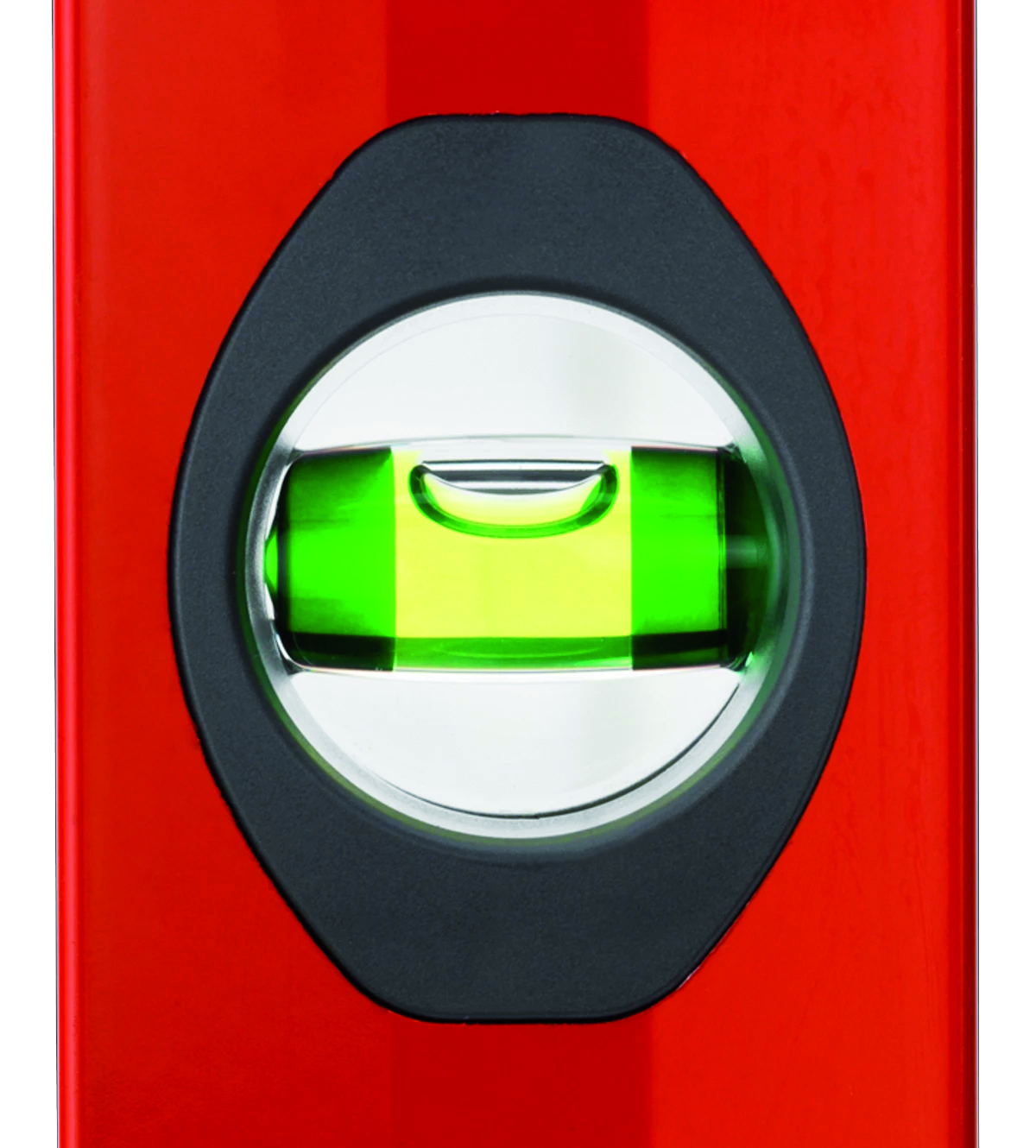 Profilo tubolare in alluminio ultra-resistente, 3 bolle 'Sola-Focus' brevettate per una lettura migliore, rapida e precisa, fiale a blocco in vetro acrilico infrangibile con lente di ingrandimento (+60%), rivestimento fluorescente per letture in luoghi con scarsa luminosità, elevata precisione anche in lettura capovolta, ideale per misurazioni orizzontali e verticali, antistatica e resistente ai raggi UV, tappi ammortizzatori durto alle estremità.