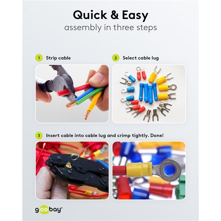 Connettori a spada può essere installati facilmente e rapidamente con una pinza crimpatrice (pinza non inclusa).