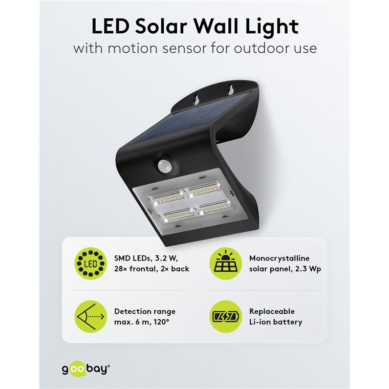 Le nostre luci solari a LED per esterni non comportano costi di elettricità e sono estremamente durevoli. Pannelli solari di alta qualità, alloggiamenti robusti e facilità di installazione sono le caratteristiche delle nostre luci solari per il giardino e il balcone. Goobay illumina il vostro mondo. Semplicemente. Tutto. Ciò che serve!