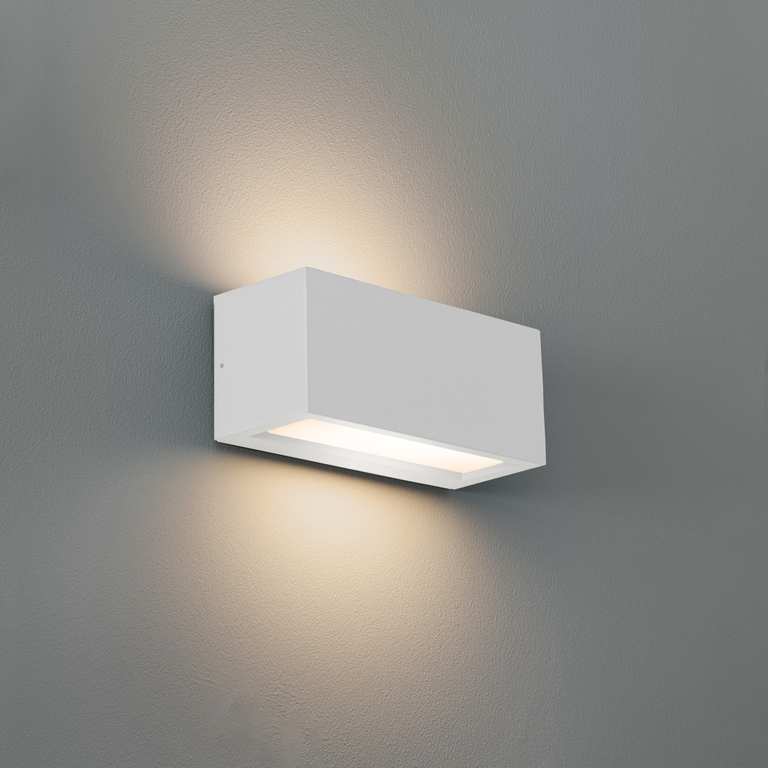 Design minimal ed elegante in alluminio, fascio luminoso bidirezionale, diffusore termoplastico, compatibile con una lampada attacco E27 (non inclusa), ideale per ambienti esterni, grado di protezione IP65.
