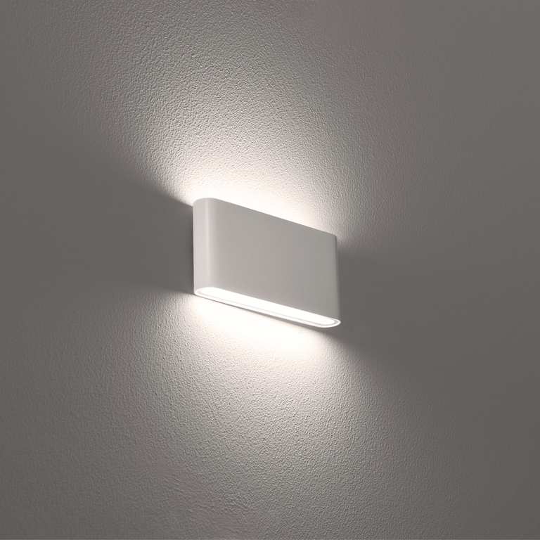 Design minimal ed elegante in alluminio, diffusore in vetro, fascio luminoso bidirezionale, 3 temperature di luce selezionabili (calda, naturale, fredda), angolo fascio di luce 120°, grado di protezione IP54.