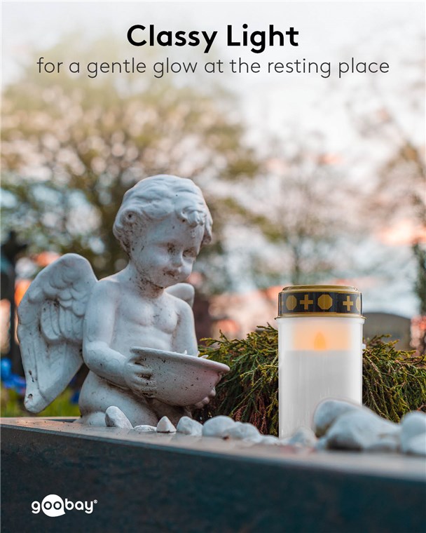 Il lumino cimiterialo crea un'atmosfera di calore e devozione nel cimitero, nei luoghi di riposo e nei monumenti commemorativi, soprattutto al tramonto e nei mesi più bui dell'anno. Il delicato bagliore della luce non solo vi accompagna nei momenti di ricordo, ma resiste anche al vento e alle intemperie, per una luce affidabile e duratura sul luogo di sepoltura.