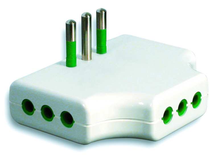 Spina 2P+T 10A, 3 prese 2P+T 10A.