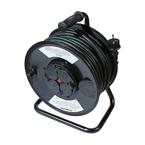 Extension lead 50m - reel, 3x1,5mm2, IP44, rubber.