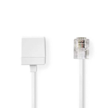 Telecom Extension Cable | RJ11 Male | RJ11 Female | 10.0 m | Cable design: Flat | Plating: Gold Plated | Cable type: RJ11 | White | Label