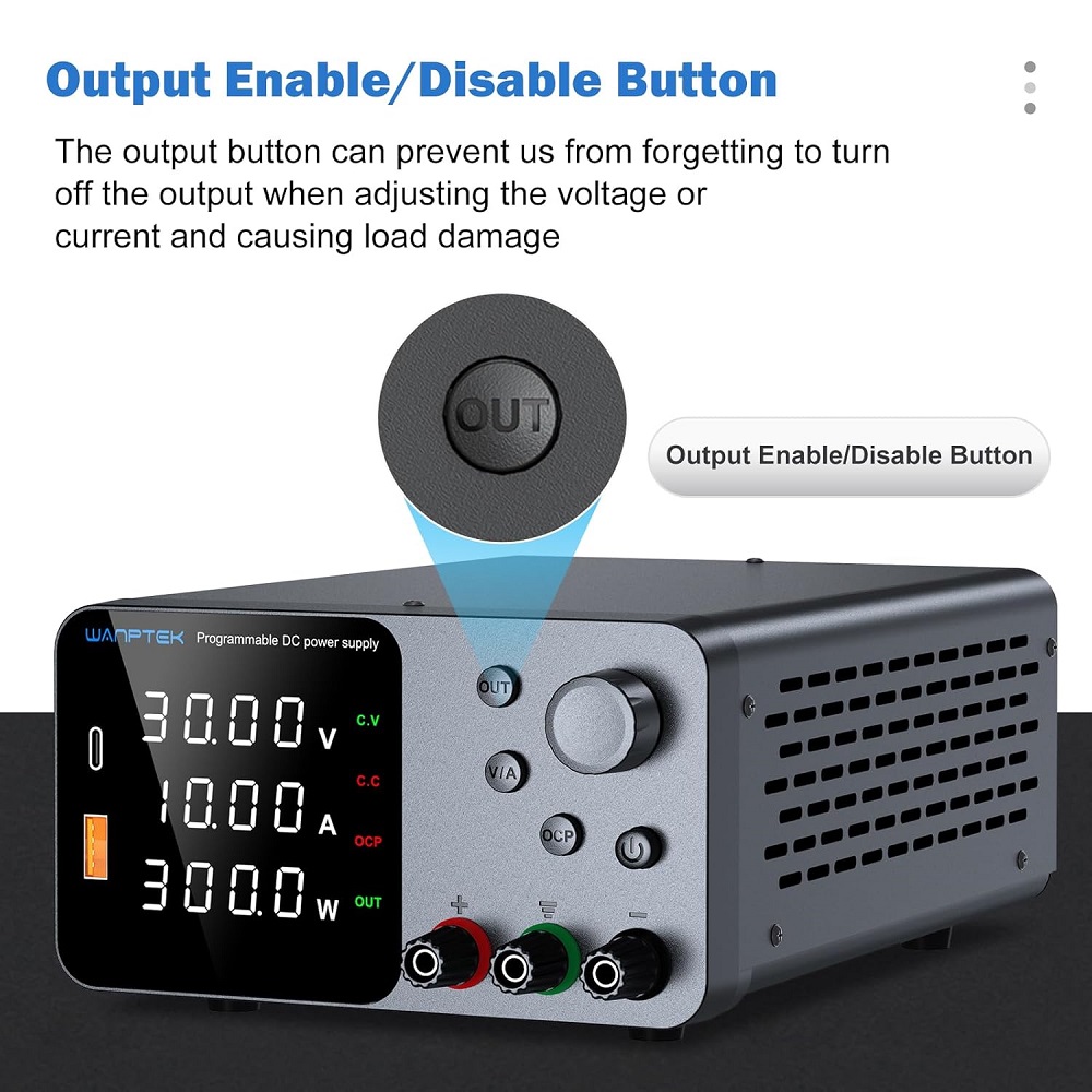 Alimentatore da banco 30V 10A 300W con regolatore di tensione CC USB/TYPE-C 18W