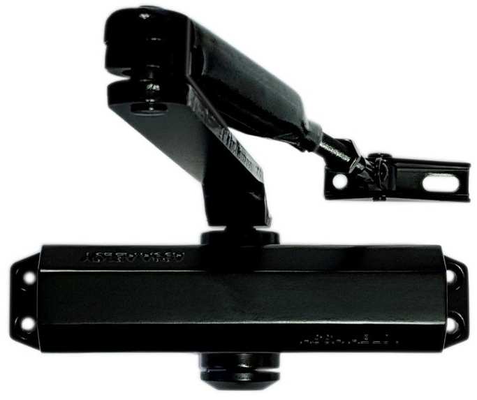 Corpo in alluminio speciale, valvole di regolazione velocità, scatto finale e chiusura ammortizzata, forza di chiusura EN 2/3/4, conforme alla normativa EN 1154, adatto per porte tagliafuoco e tagliafumo, apertura max 180°, col. nero.