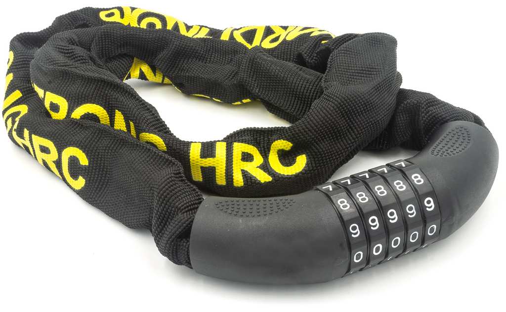 In acciaio cementato rivestito in nylon, sezione quadra, chiusura a combinazione, col. nero. Ideale per biciclette e motocicli.