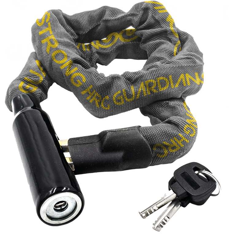 In acciaio cementato rivestito in nylon, sezione quadra, chiusura con lucchetto, col. nero. Ideale per biciclette e motocicli.