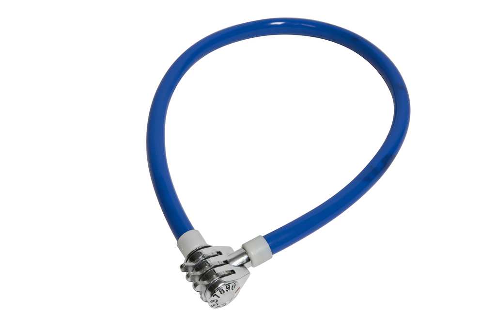 In acciaio rivestito in pvc, chiusura a combinazione, col. assortiti. Ideale per biciclette.