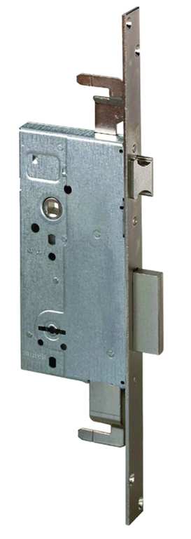 Serratura da infilare a doppia mappa. 2 mandate e scrocco, 3 punti di chiusura, con contropiastra e copritoppa, senza aste, 3 chiavi, scatole mm. 76/86x170.