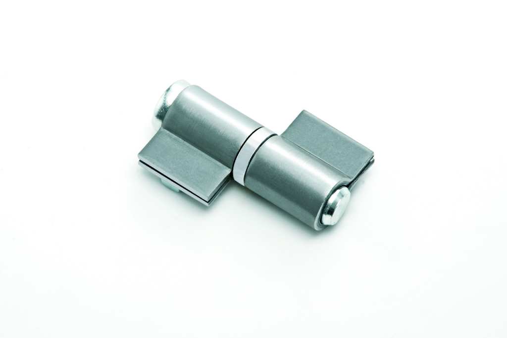 In acciaio, perno sfilabile, con rondella. Per serramenti in acciaio.
