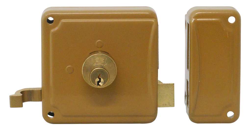 Serratura da applicare. Doppio cilindro (esterno/interno), 2 mandate, 3 chiavi, verniciata.