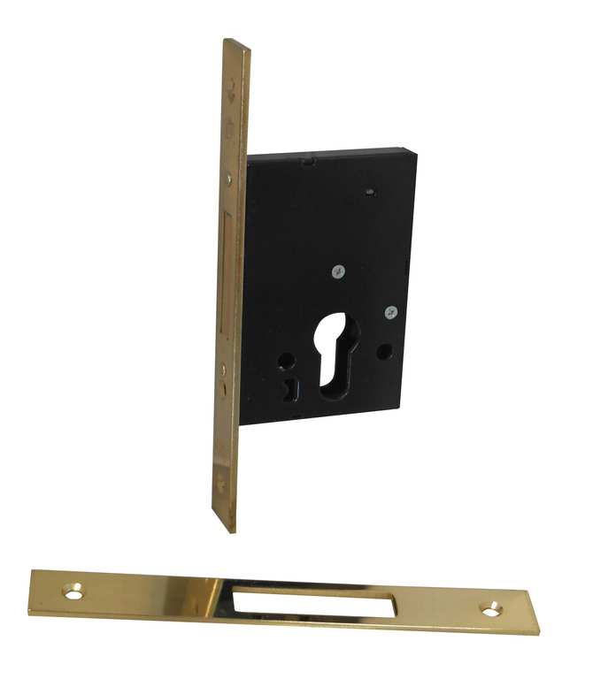 Serratura da infilare. Solo catenaccio, 2 mandate, con contropiastra, 3 chiavi, scatole mm. 67/77x97,5.