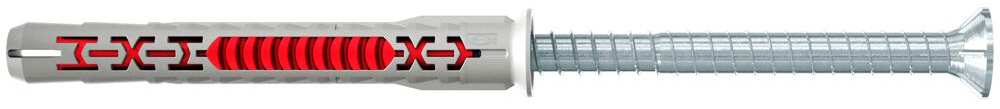 Tassello universale prolungato bi-materiale in nylon, marcatura CE, applicazioni certificate su ogni supporto, idoneo per fissaggio di materiali fragili e in prossimità dei bordi. Con vite di sicurezza premontata in acciaio zincato, impronta torx TSP.
