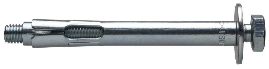 In acciaio zincato, ancorante con corpo espandente, vite testa esagonale in acciaio (classe 8.8), rondella maggiorata. Ideale per piastre con asole o con fori allargati.