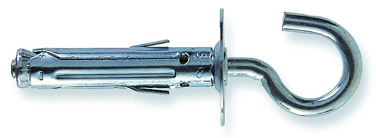In acciaio, con alette antirotazione, occhiolo aperto. Per il montaggio su materiali edili.