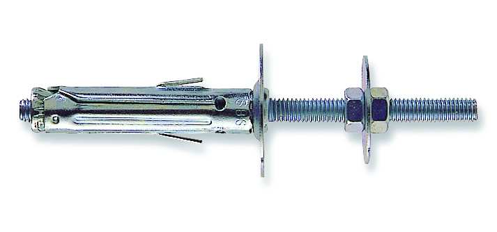 In acciaio, con alette antirotazione. Per il montaggio su materiali edili.
