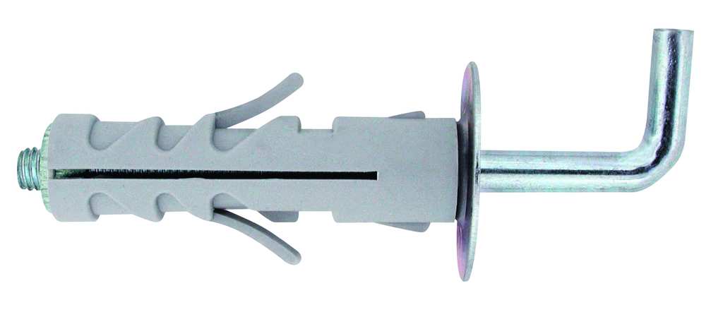 In nylon, con alette antirotazione, gancio lungo in acciaio zincato bianco, rondella metallica, per fissaggi leggeri.