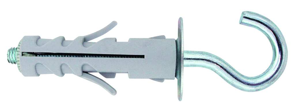 In nylon, con alette antirotazione, occhiolo aperto in acciaio zincato bianco, rondella metallica, per fissaggi leggeri.