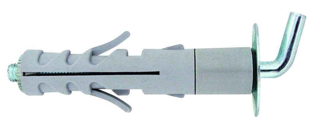 In nylon, con alette antirotazione, gancio corto in acciaio zincato bianco, rondella metallica, tipo prolungato, per fissaggi leggeri.