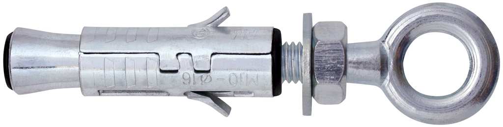 Ancorante a due schermate in acciaio zincato bianco, con alette antirotazione, occhiolo forgiato zincato bianco, per fissaggi pesanti.