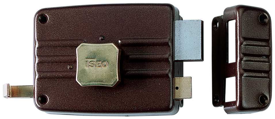 Serratura da applicare. Pomolo interno, cilindro esterno staccato, scrocco separato, 3 chiavi.